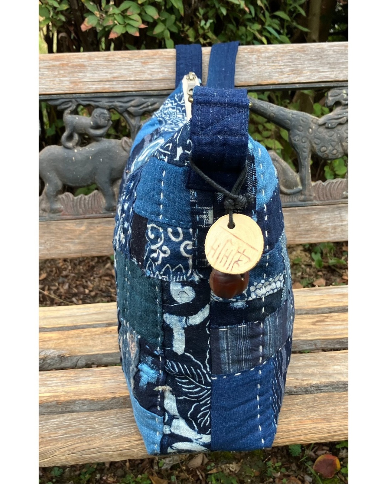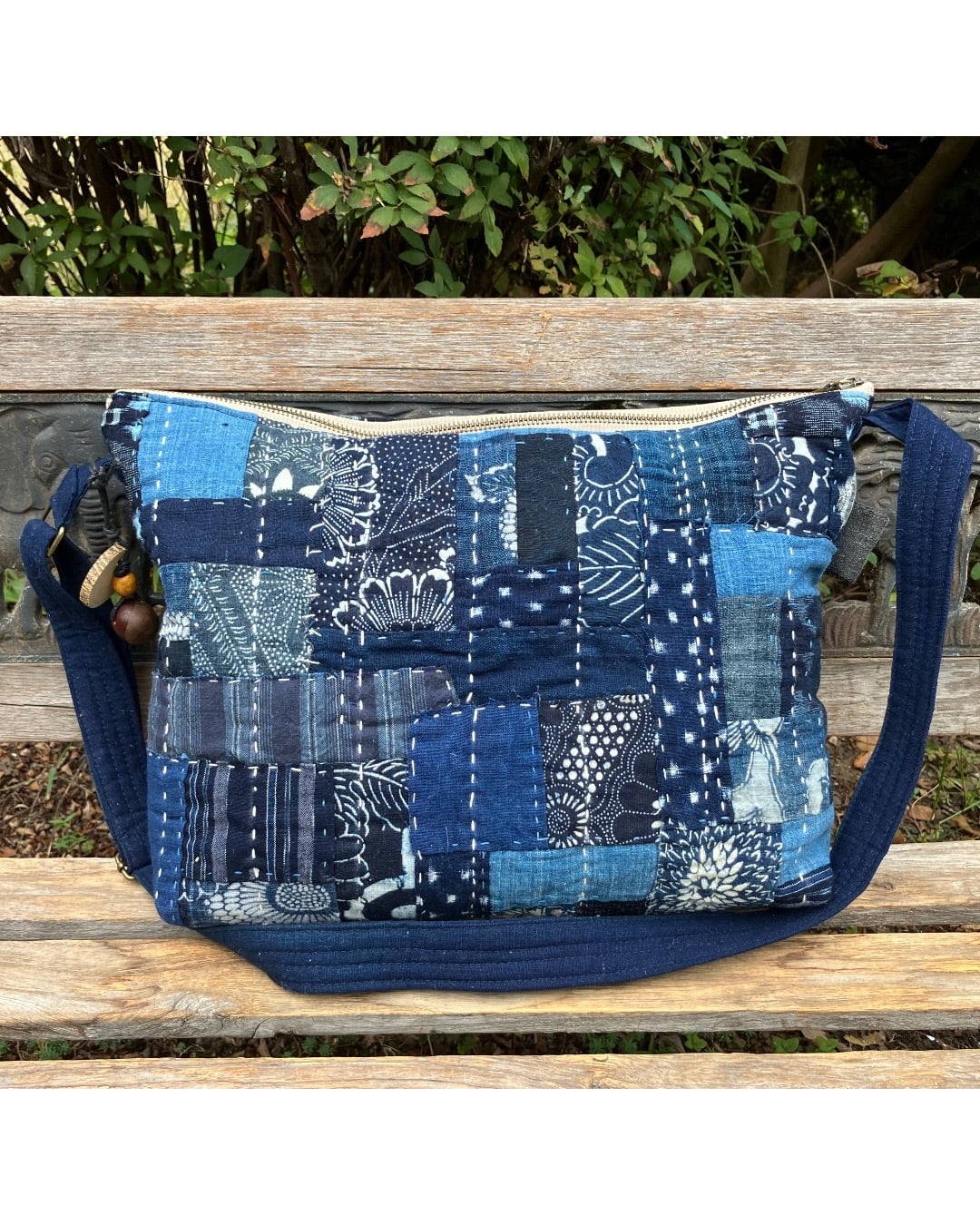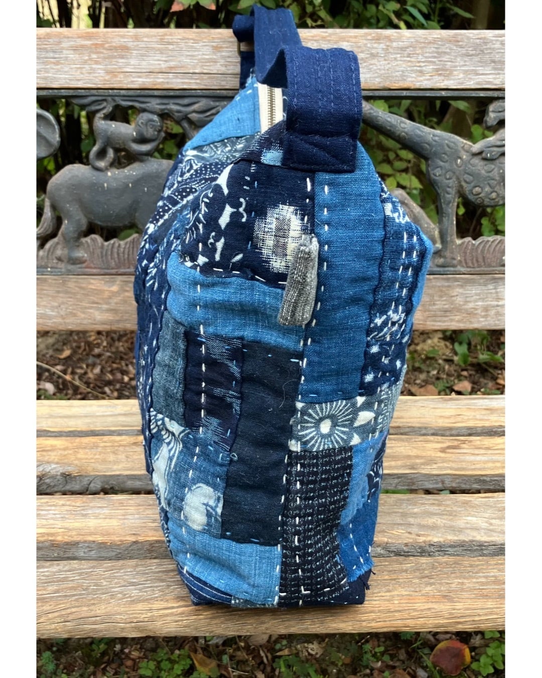 色々な古布を接ぎ合わせて刺し子をした斜め掛けショルダーバッグです。