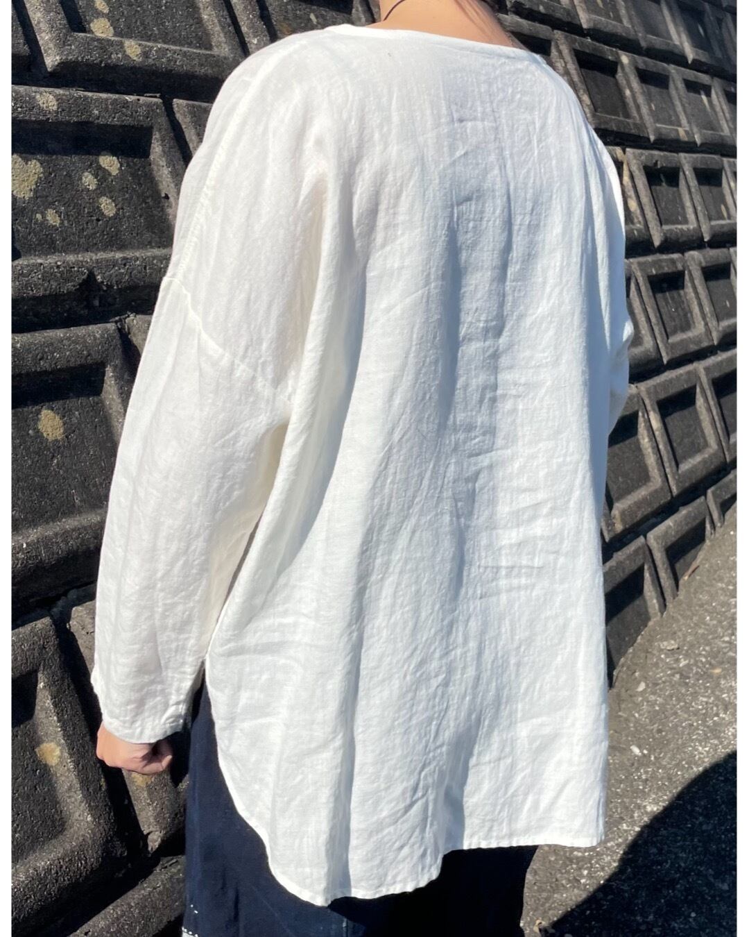リネン100% シンプルブラウス(オフホワイト)