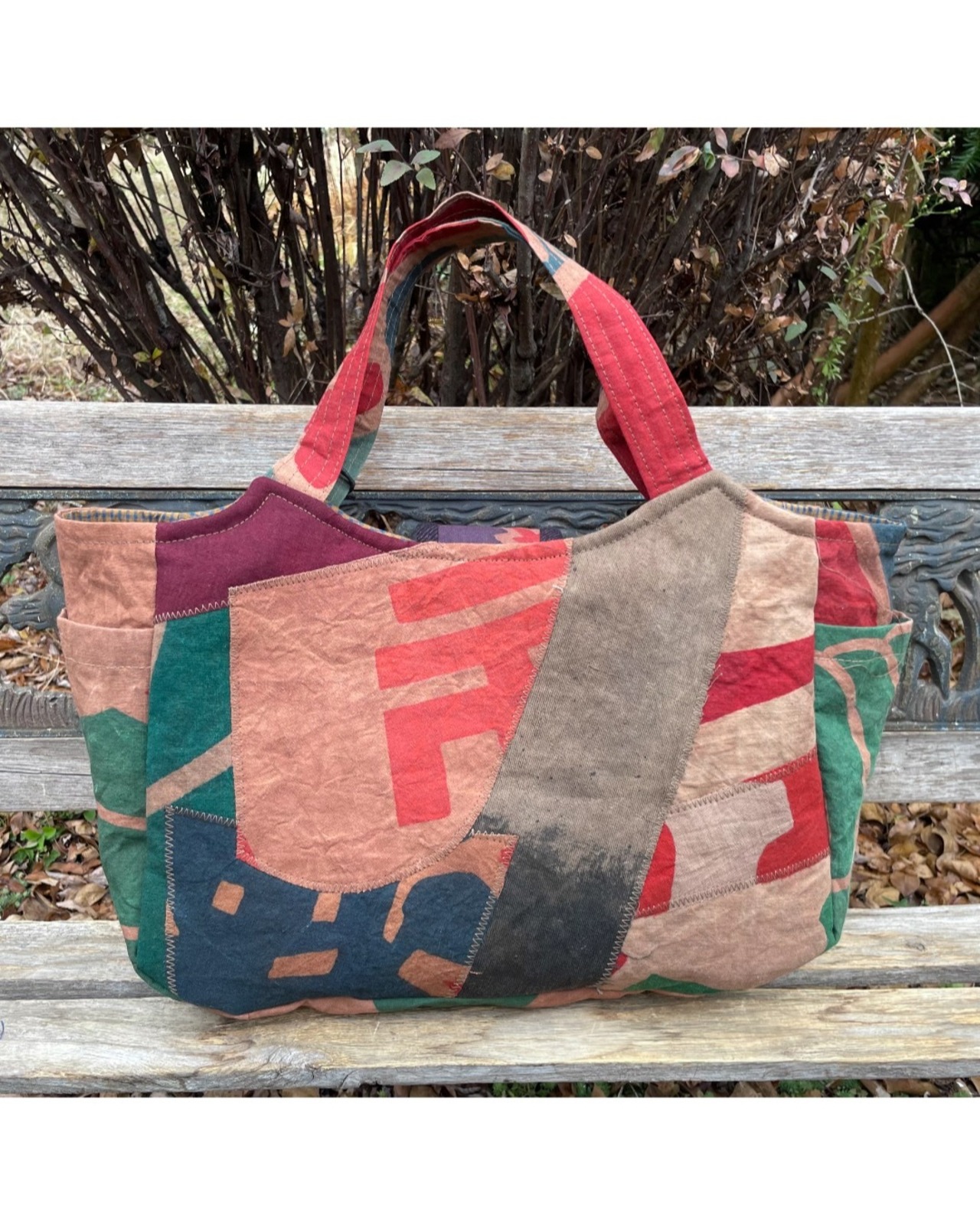 柿渋染めをした色々な大漁旗や幟旗を接ぎ合わせたトートバッグです。