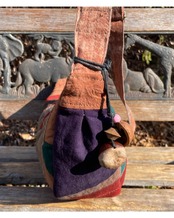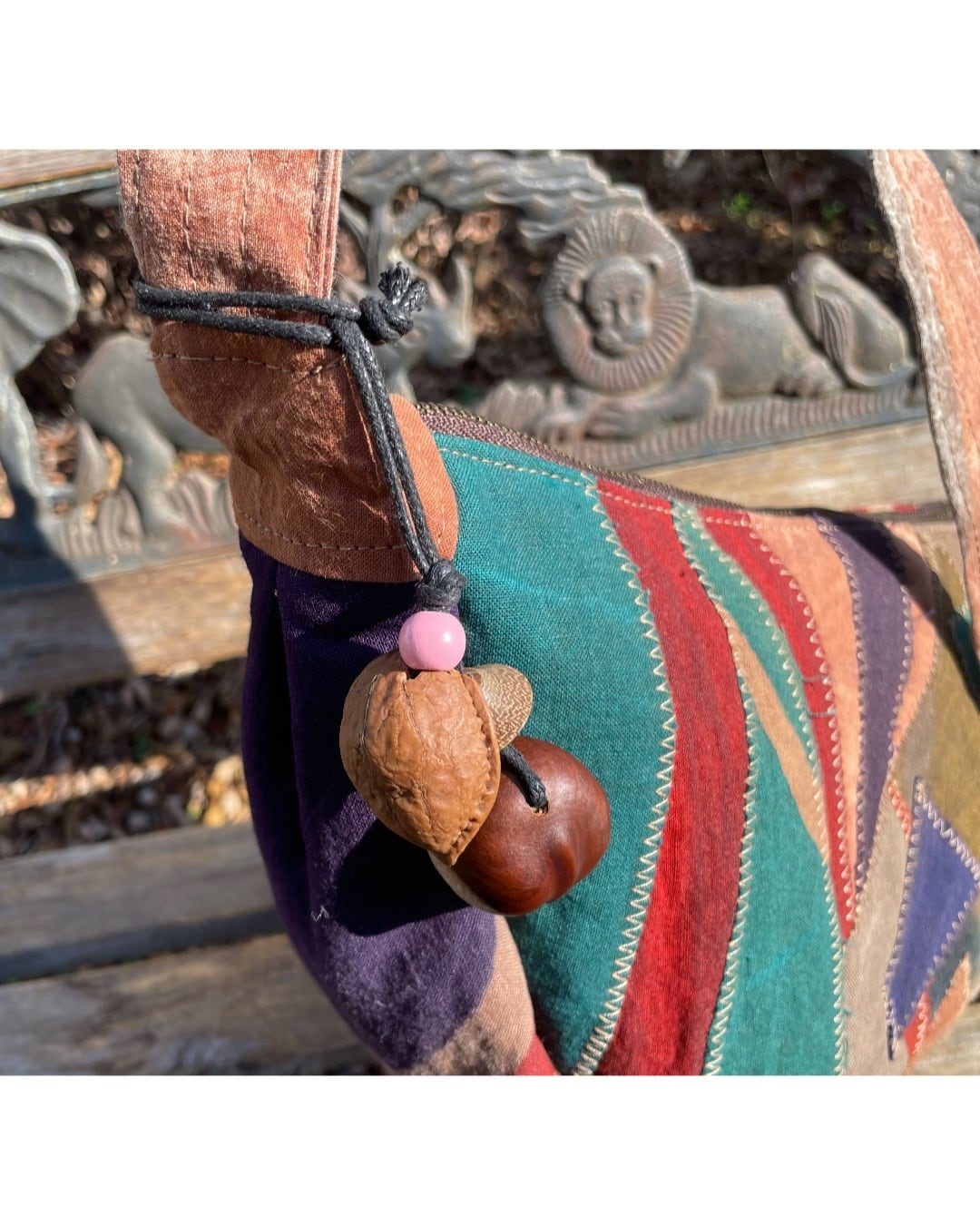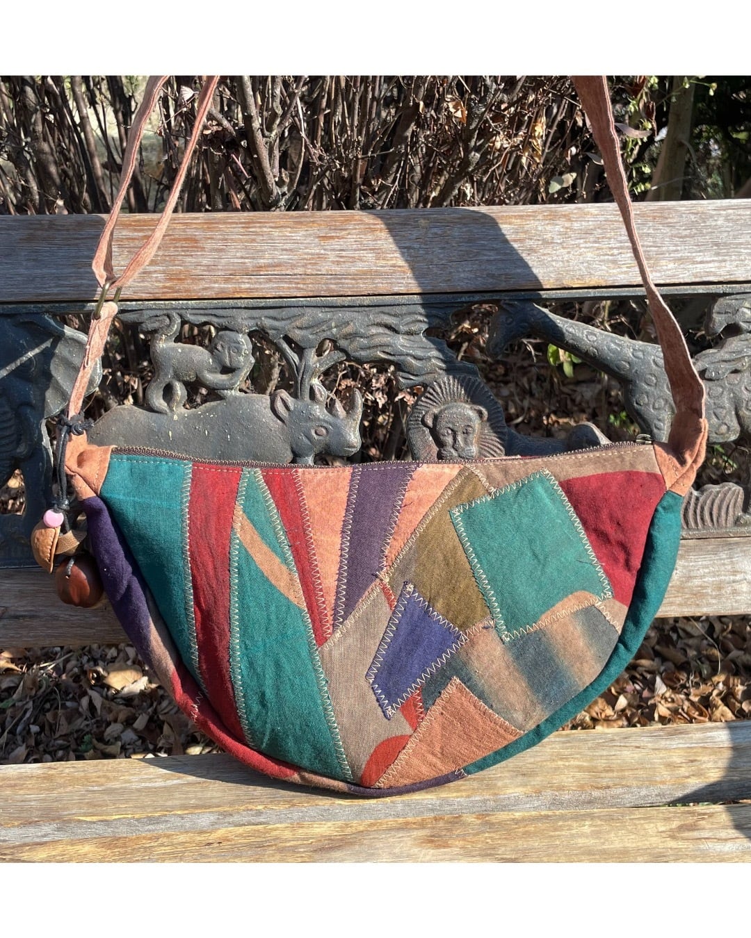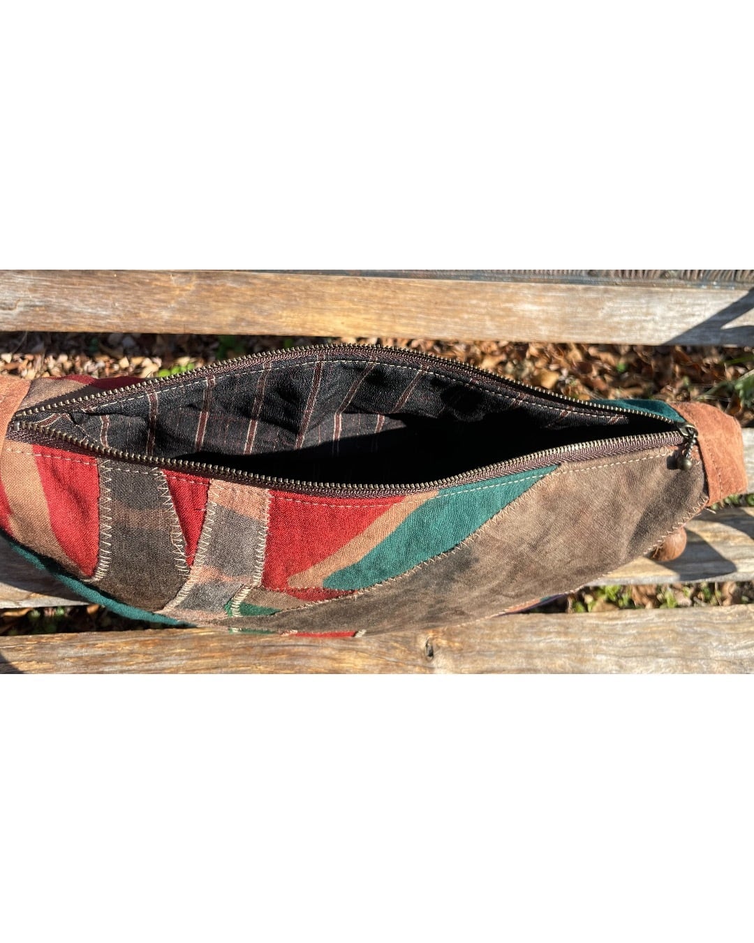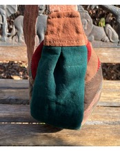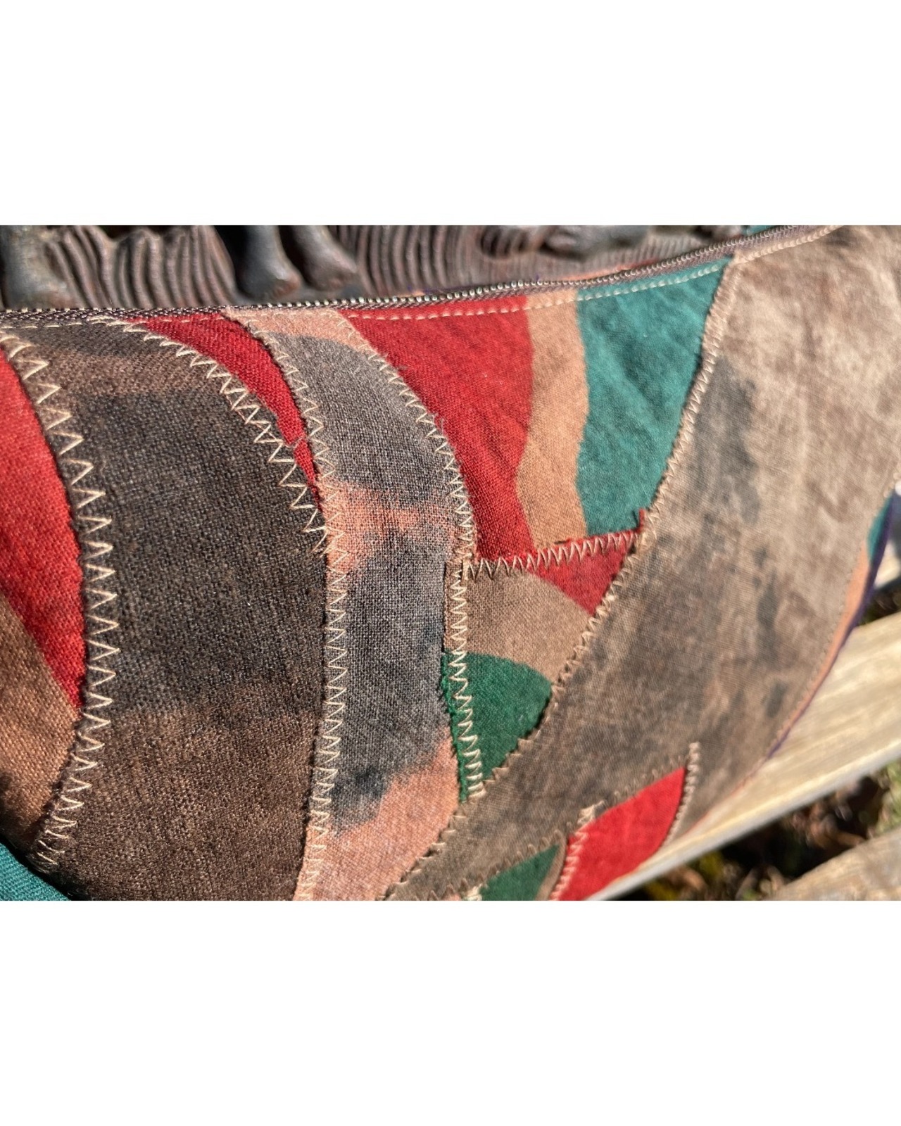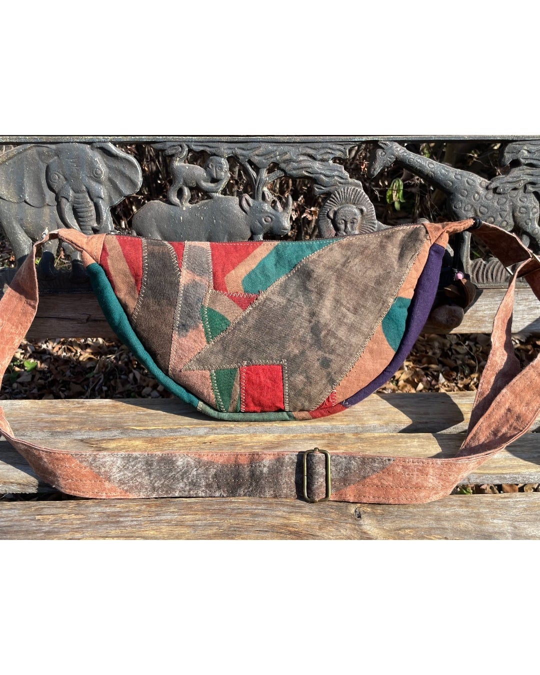 柿渋染めと鉄媒染した色々な旗達を自由に合わせたボディバッグを作りました。