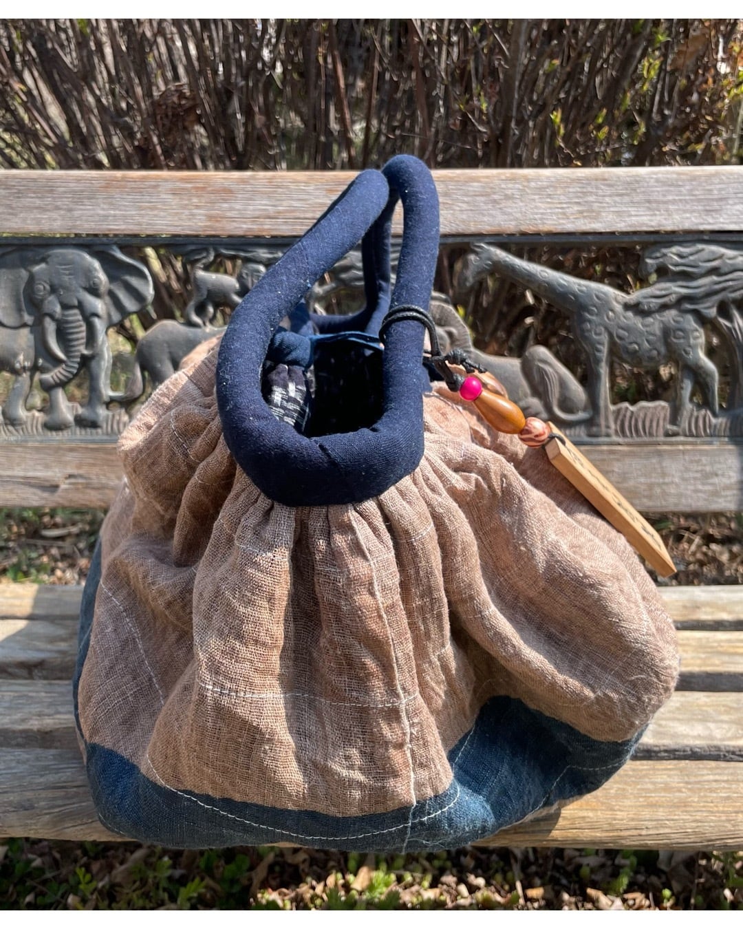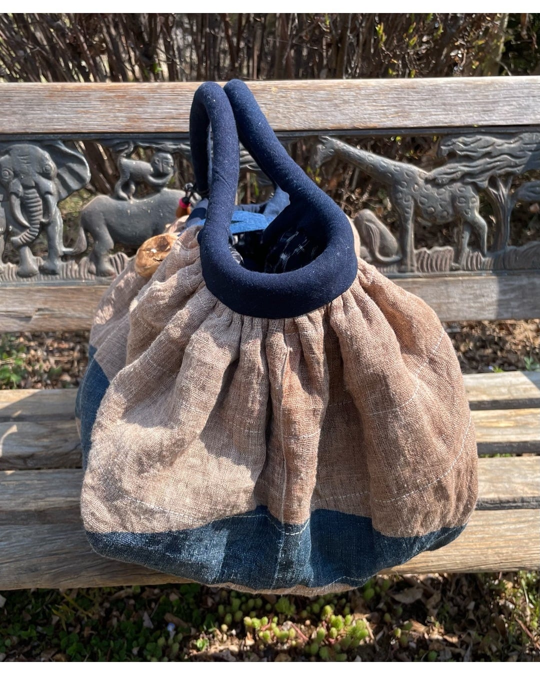 古布 麻の家紋グラニーバッグ