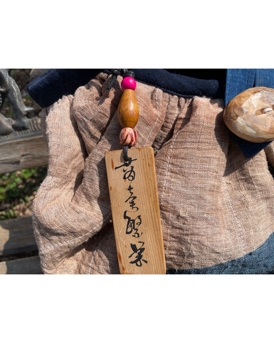 木札のバッグチャーム付き。