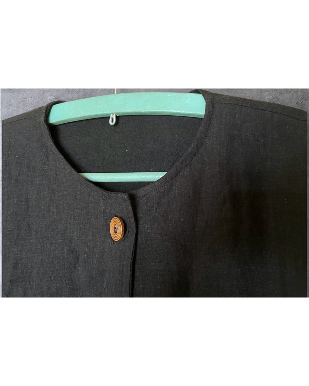 しっかりとした40番手のリネンで作ったこの時期に大活躍のノーカラージャケット。