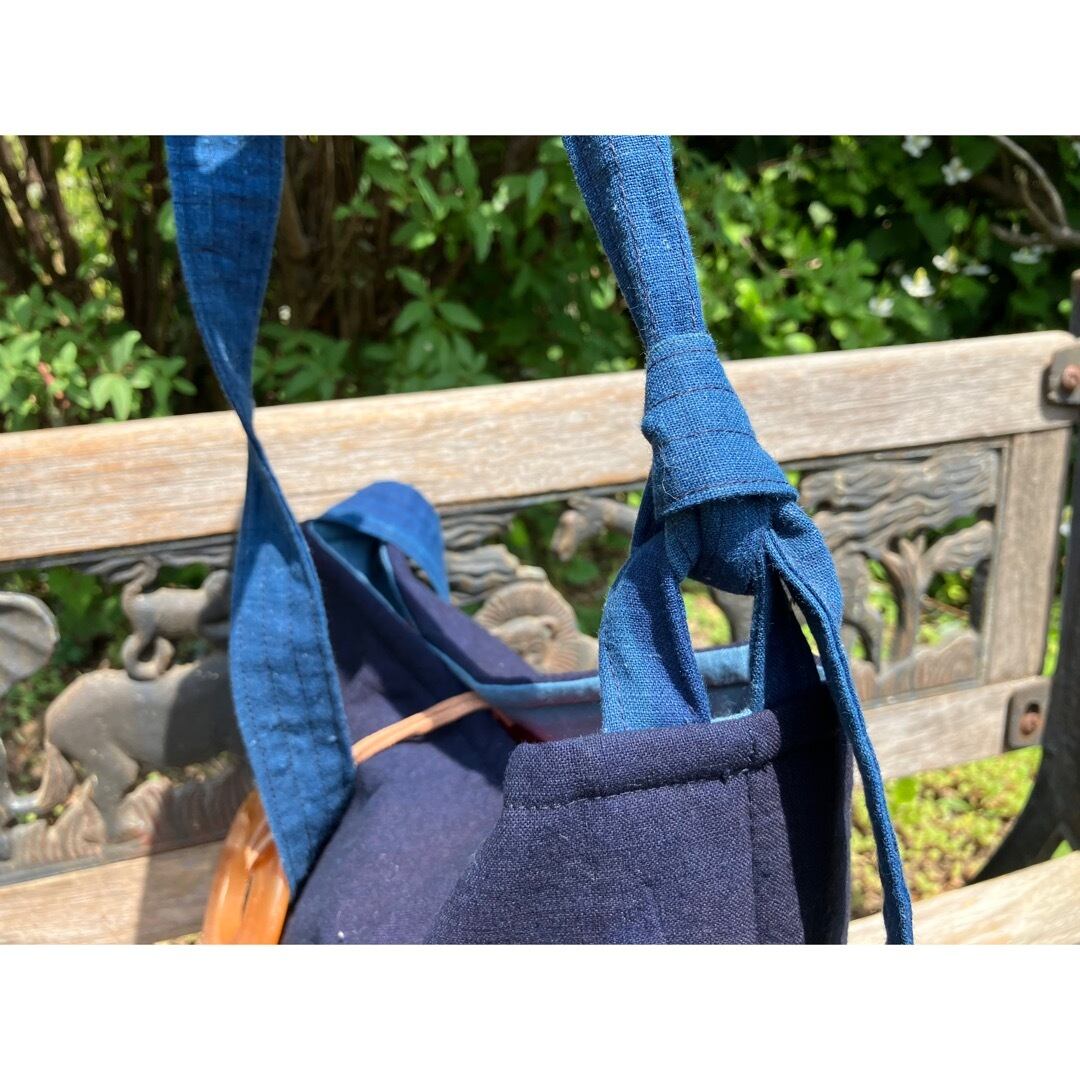 サイズ(平置き): 縦約28cm 横約32cm マチ無し 肩紐の長さ約〜145cm(調節は縛るタイプ) 肩紐の幅約3cm