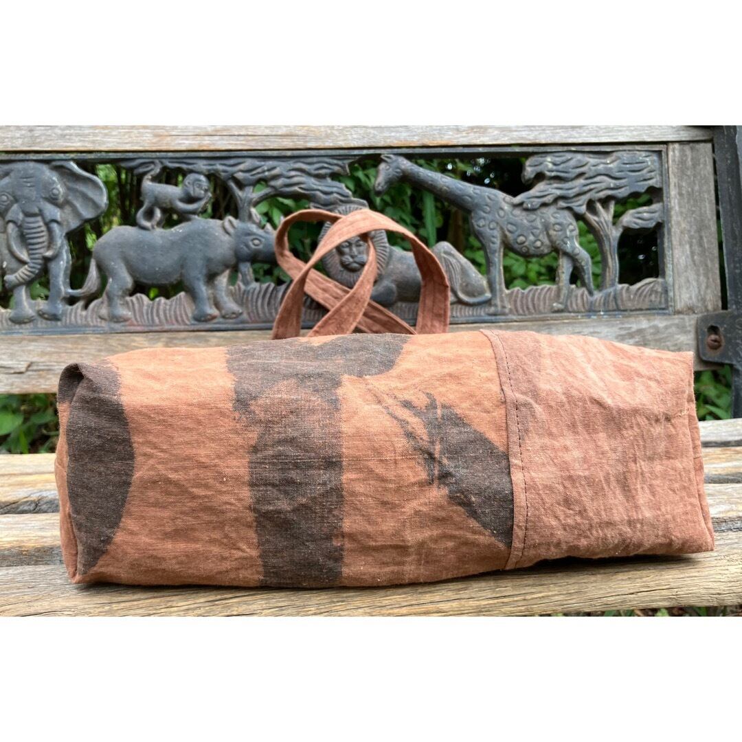 柿渋染めをした奉納旗のゴム口巾着風バッグです。
