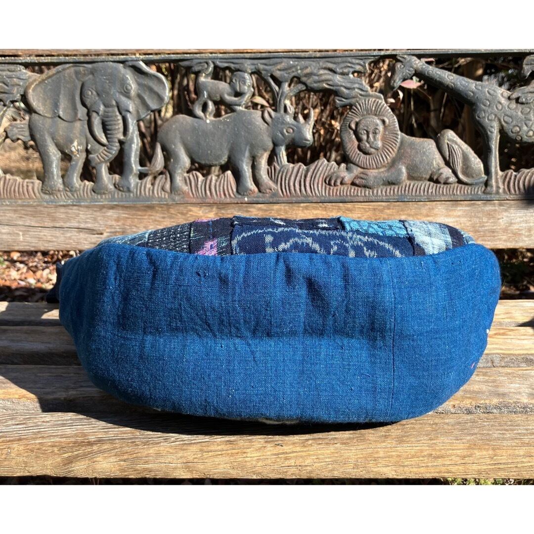 色々な古布を接ぎ合わせてラウンドミニショルダーバッグを作りました。