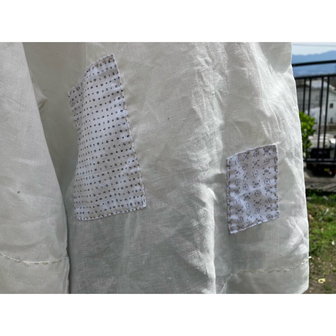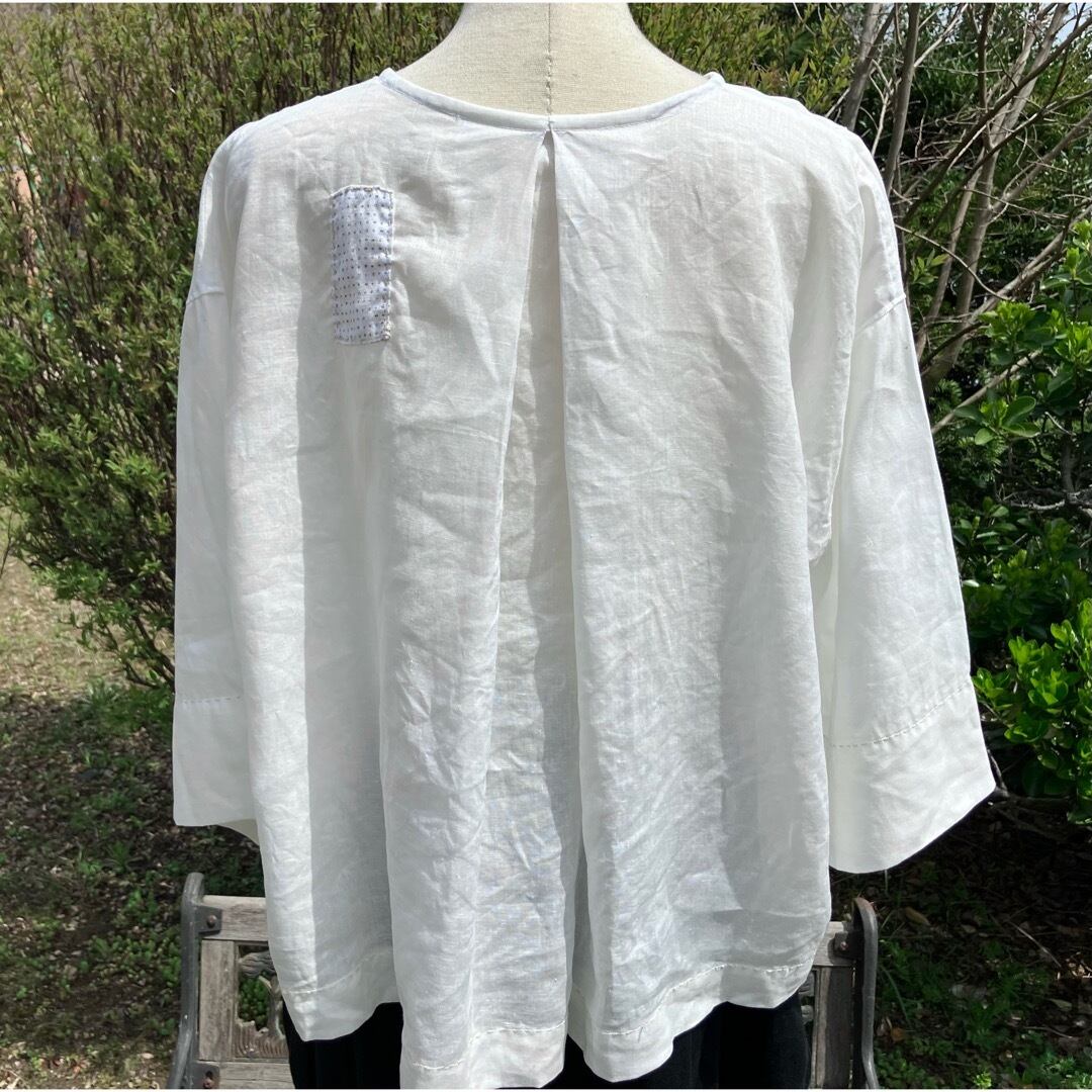 張りのあるリネンでフロントタック折り袖ブラウスを作りました。