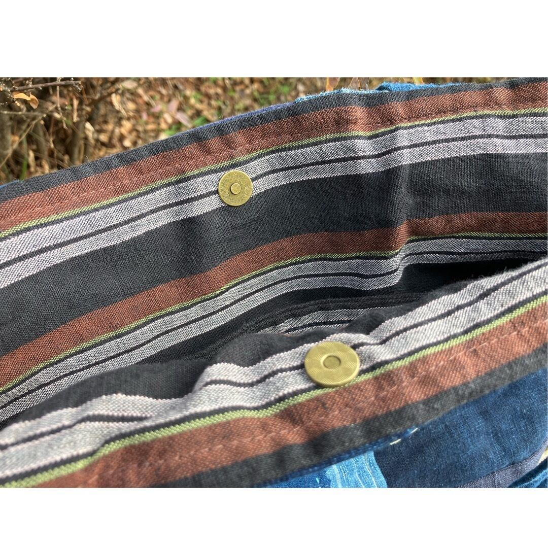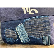 色々な前掛けや剣道着などと襤褸布合わせた縦長のトートバッグです。